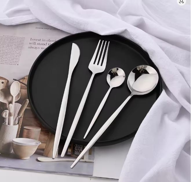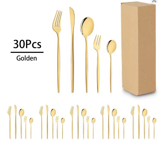 Dette 30-delers bestikksett i rustfritt stål kombinerer flott design med langvarig holdbarhet. Det er laget av materialer av høy kvalitet som tåler daglig bruk og vask i oppvaskmaskin uten problemer.