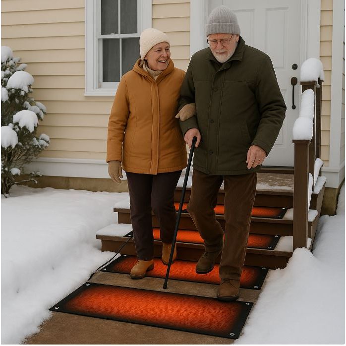 Denne varmematten i gummi er designet for å smelte opptil 5 cm snø i timen, noe som sikrer at stien eller trappen din alltid er fri.