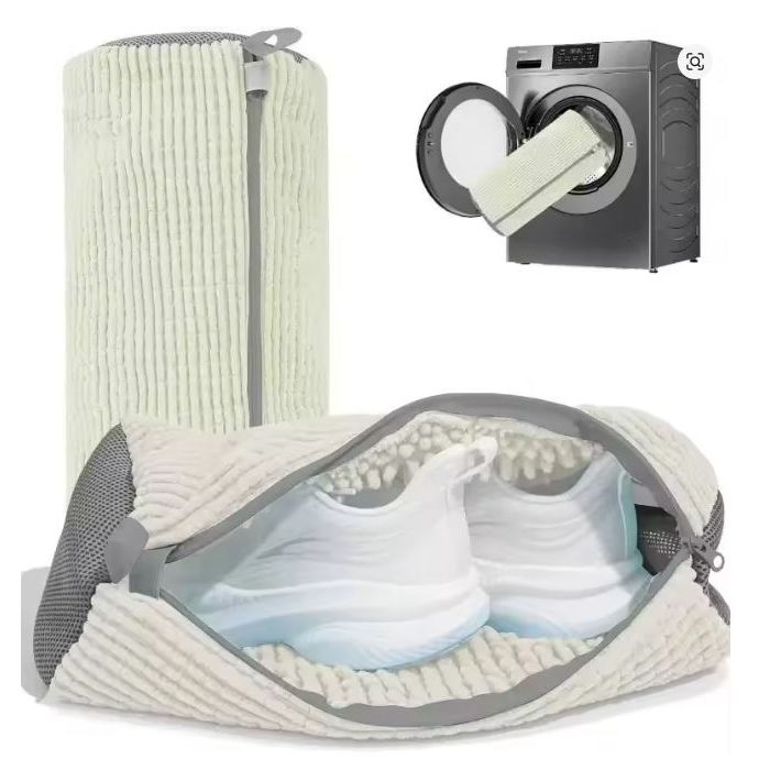 🟡 Myk og skånsom innside– Den fluffy innsiden demper støt og beskytter materialet på skoene under vask.